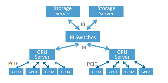 硬件系统采用Lustre存储+IB网络+GPU集群,实现较高的IO吞吐、IB高速互联及GPU大规模并行训练。
